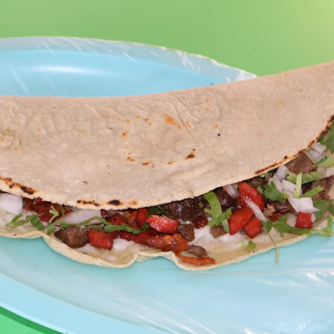 Taco tradicional servido en tortilla con carne a elegir (asada, pastor, chorizo o mixto).