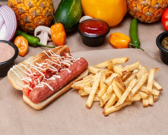No incluye verduras ni extras. Solo salchicha y aderezo.