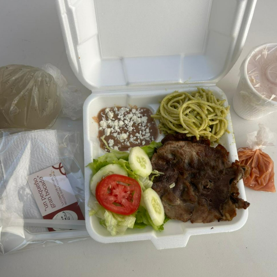 (Acompañada de arroz, frijoles, ensalada, sopa y agua CH)
