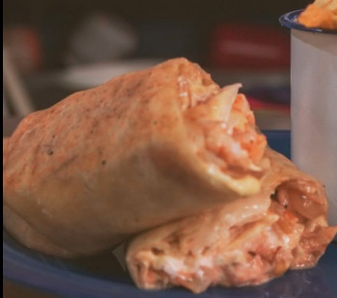 Arrachera marinada y camarones al ajo con pimiento morrón, cebolla, queso, lechuga y mayonesa envuelto en tortilla de harina. Incluye papas fritas