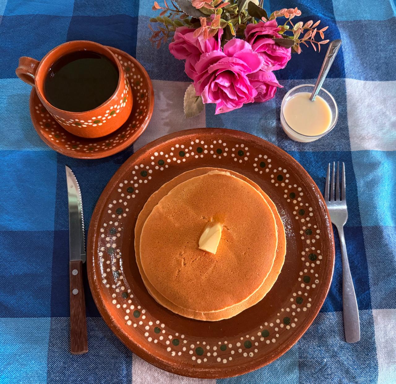 2 PIEZAS DE HOT CAKES,MAPLE Y CAFÉ DE OLLA