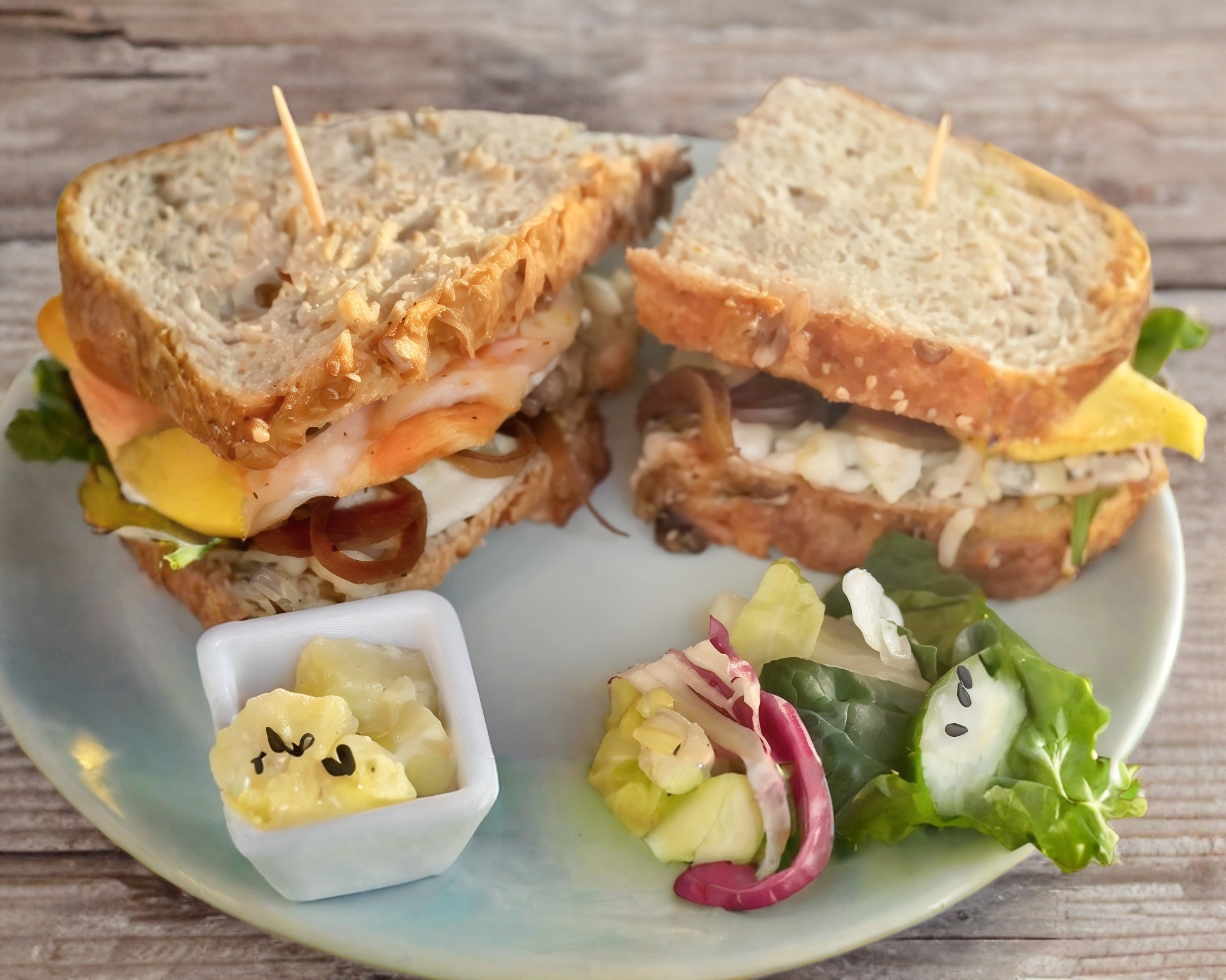 Servido con pan multigrano y mix de lechugas, agrega nuestras exclusivas tiras de camote por $25. Con tocino, queso con jitomate y aguacate.