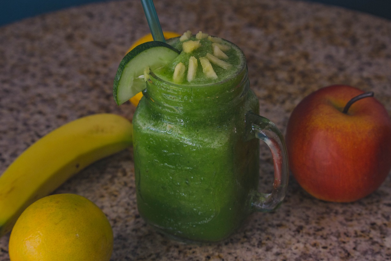 Desintoxica sangre e hígado, betabel, pepino, apio, manzana, jengibre, arándano y jugo de naranja.