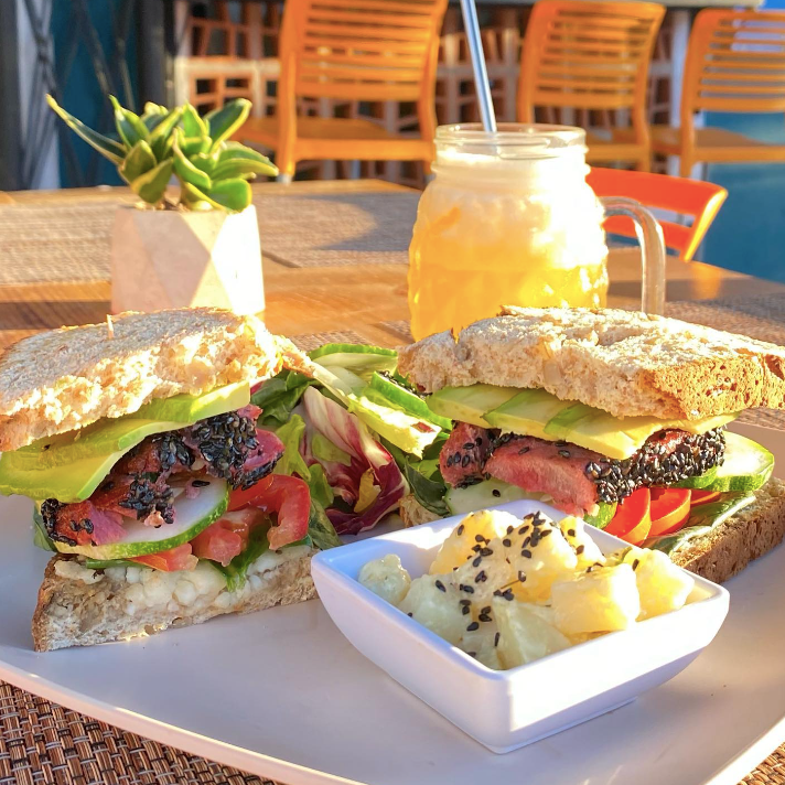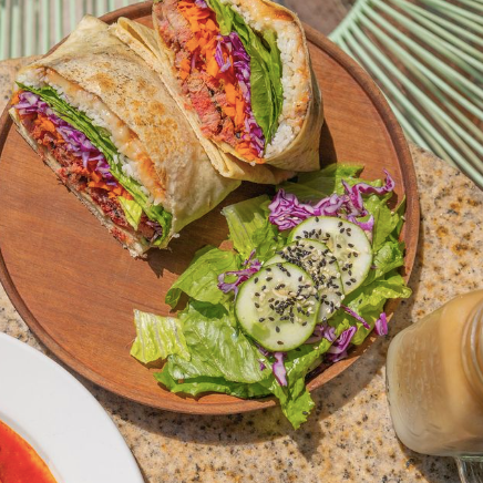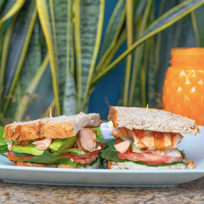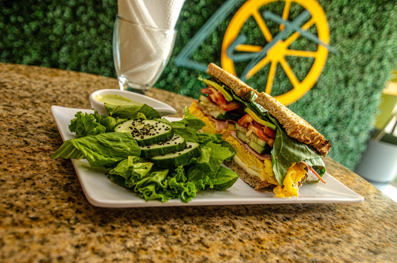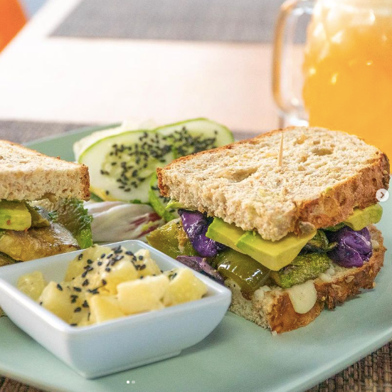 Servido con pan multigrano y mix de lechugas, agrega nuestras exclusivas tiras de camote por $25. en ensalada, con jitomate, espinaca, pepino y aguacate.