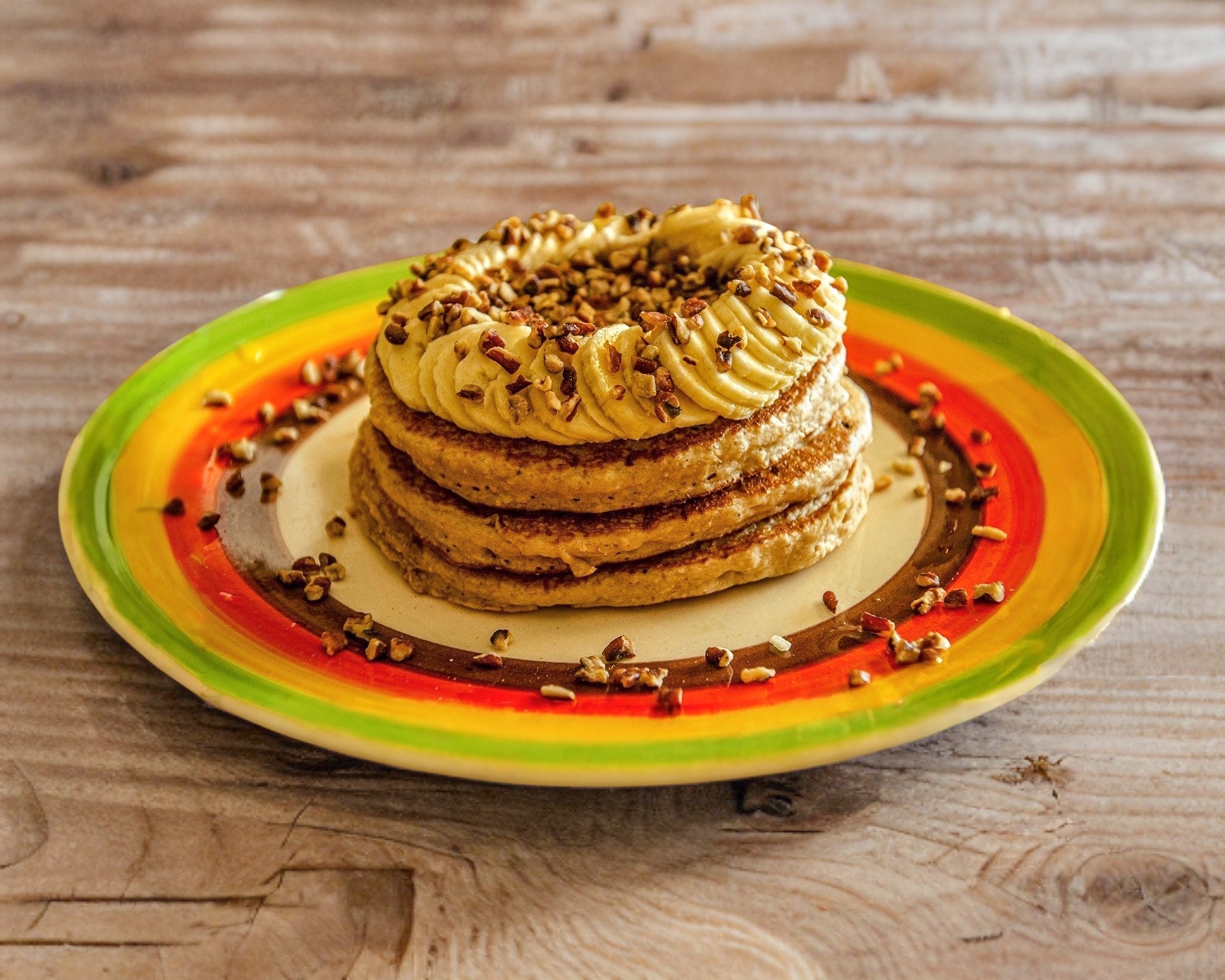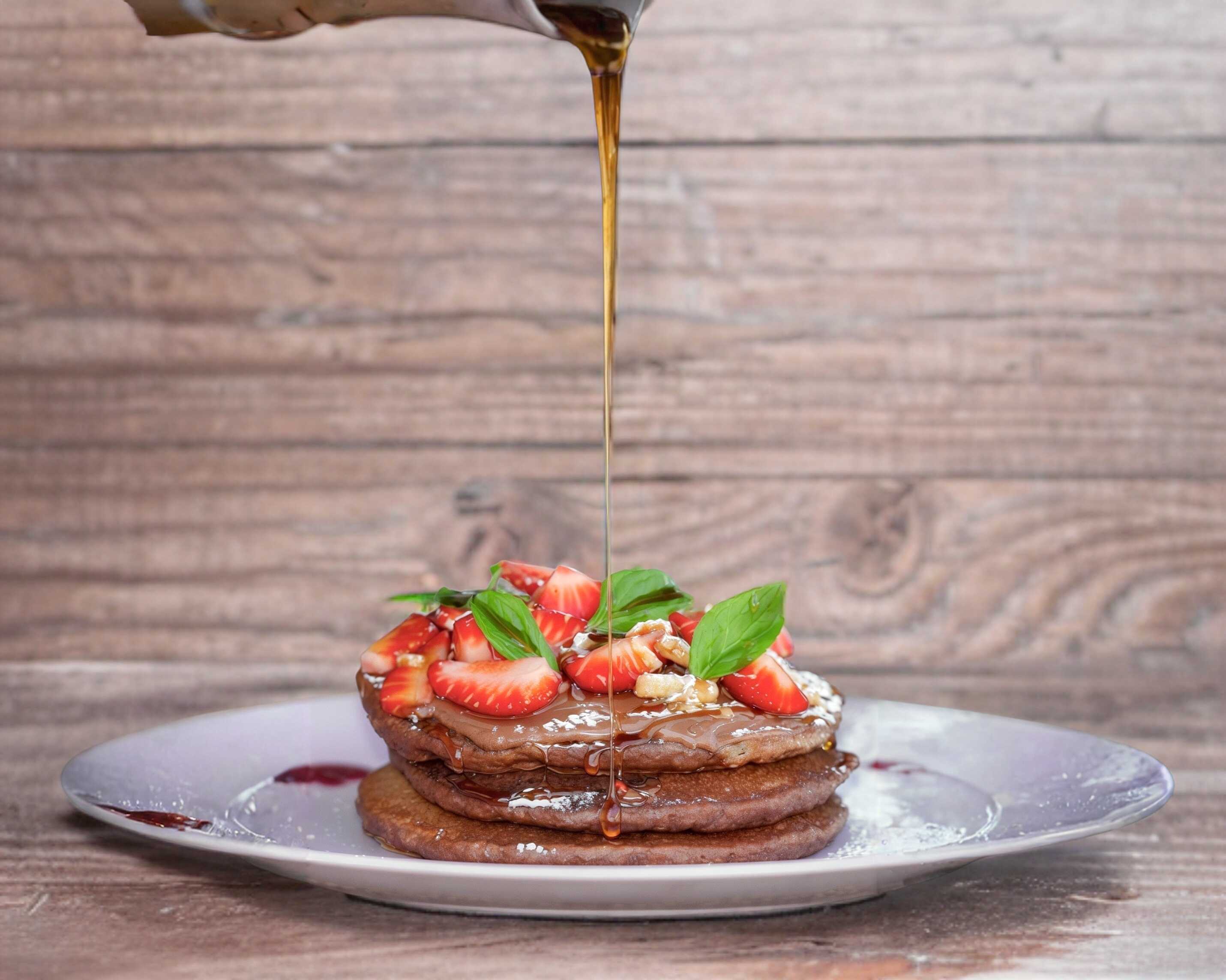 Hotcakes de Cocoa, con nutella y fresa fresca.
