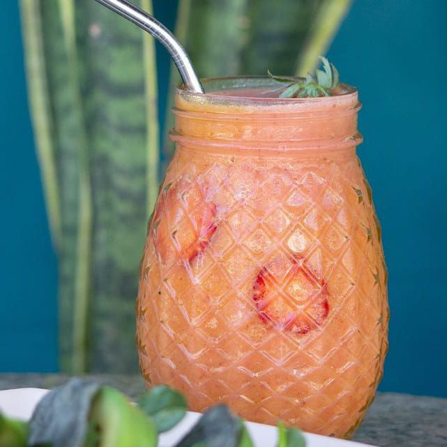 Anti-inflamatorio, plátano, melón, jugo de naranja, zanahoria piña, jengibre, limón.