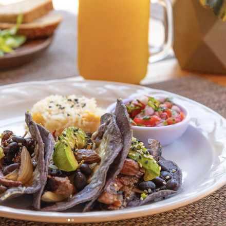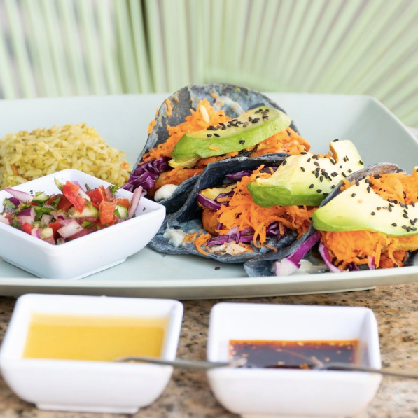 Servidos con arroz poblano y salsa mexicana. Queso, aguacate, col y zanahoria. Puedes Cambiar la tortilla de maíz por tortilla LIT, hecha de avena y claras + $35.