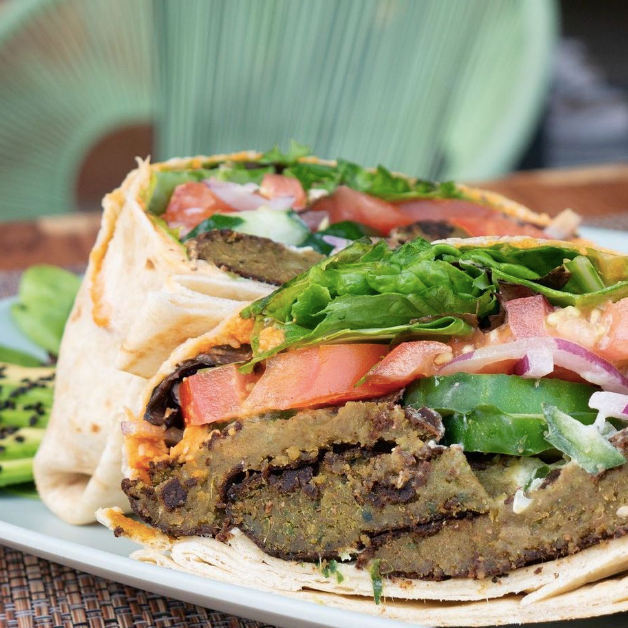 Falafel, col morada,pimientos, lechuga.tzatziki y ensalada de jitomate