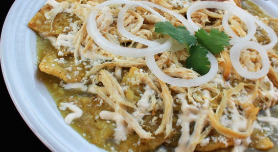 Chilaquiles crujientes bañados con la salsa de elección, queso, crema, cebolla, cilantro, acompañados con frijoles refritos, elige tus favoritos, ¿deseas agregar ingredientes extra?.