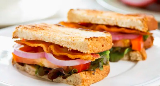 Con jamón, tocino lechuga, jitomate, cebolla y mayonesa.