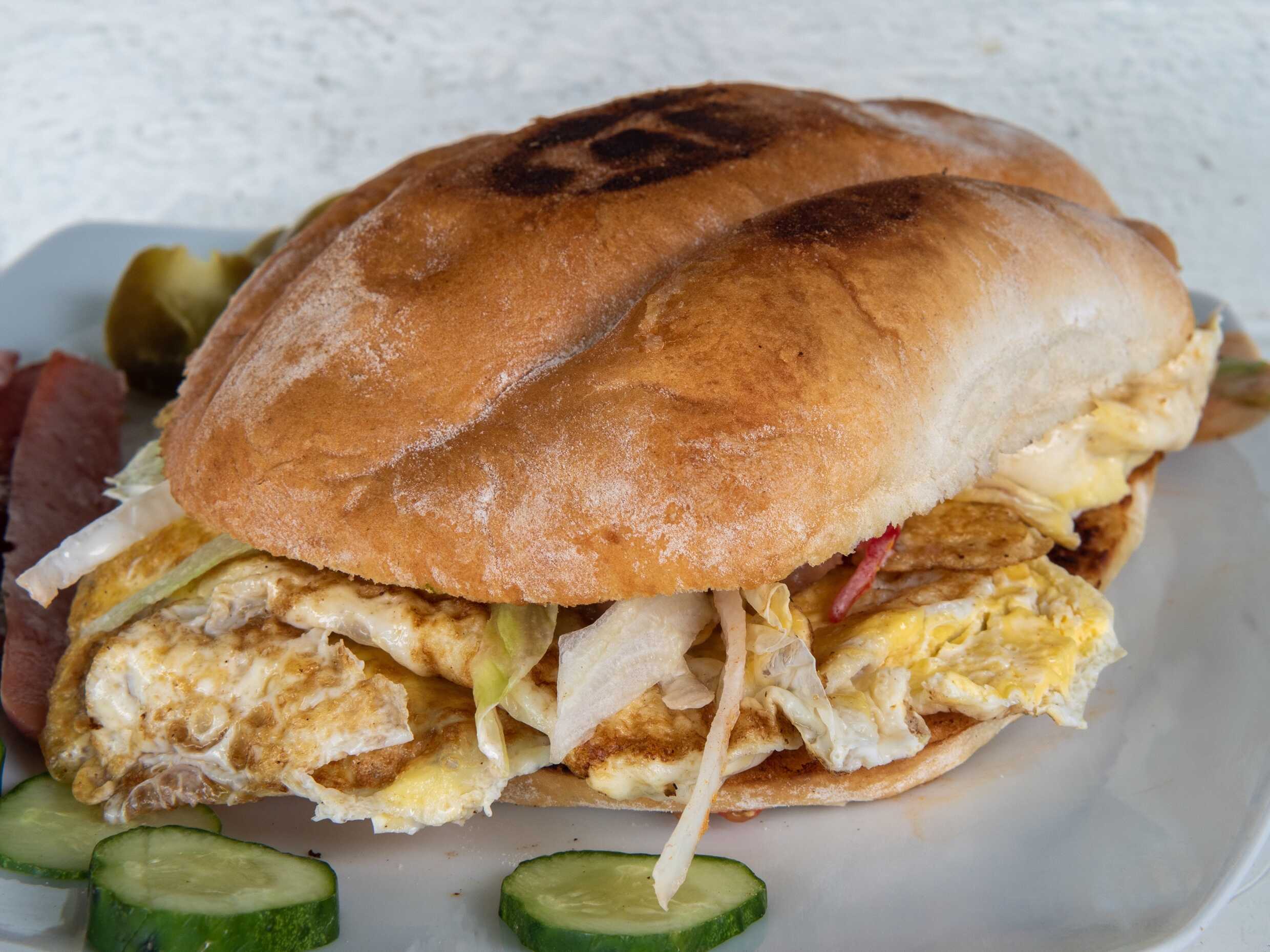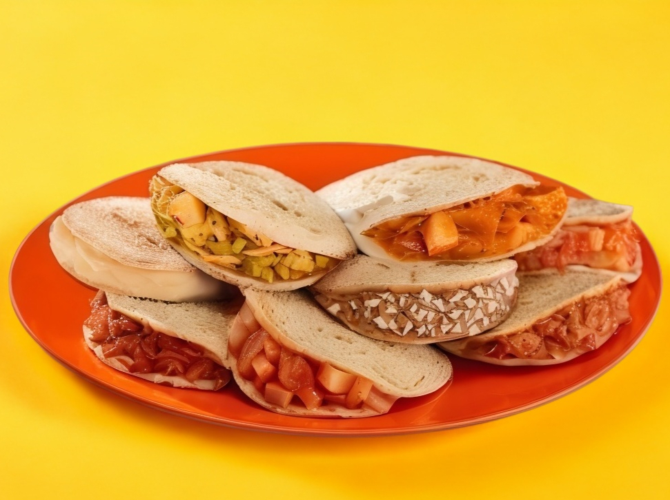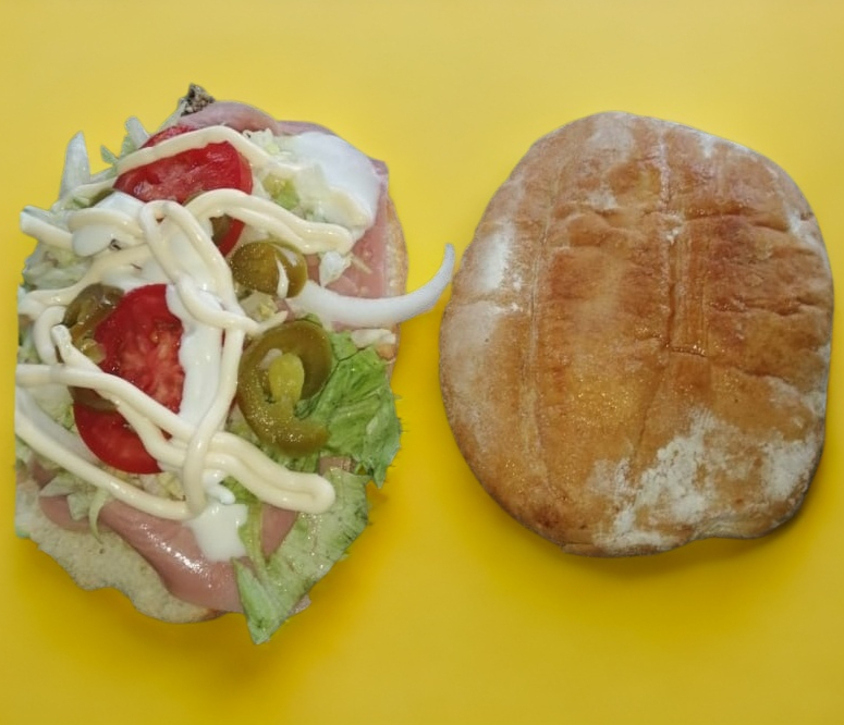 Emparedado con dos ingredientes, Crema o mayonesa, cebolla, jitomate y chile jalapeño