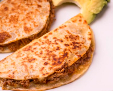Tortilla de harina con queso oaxaca dentro cocinado en plancha
