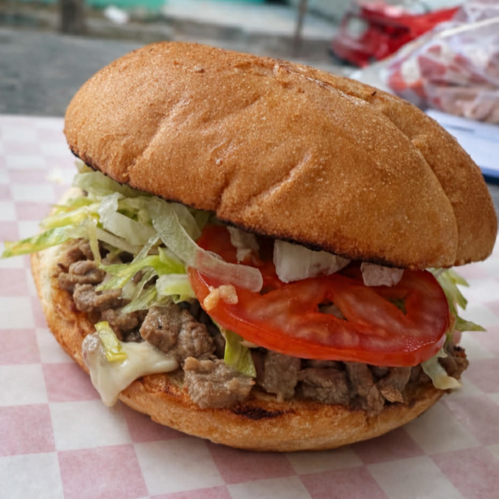 Mayonesa, Carne, Lechuga, Cebolla, Jitomate, Jalapeño, Costra de Queso