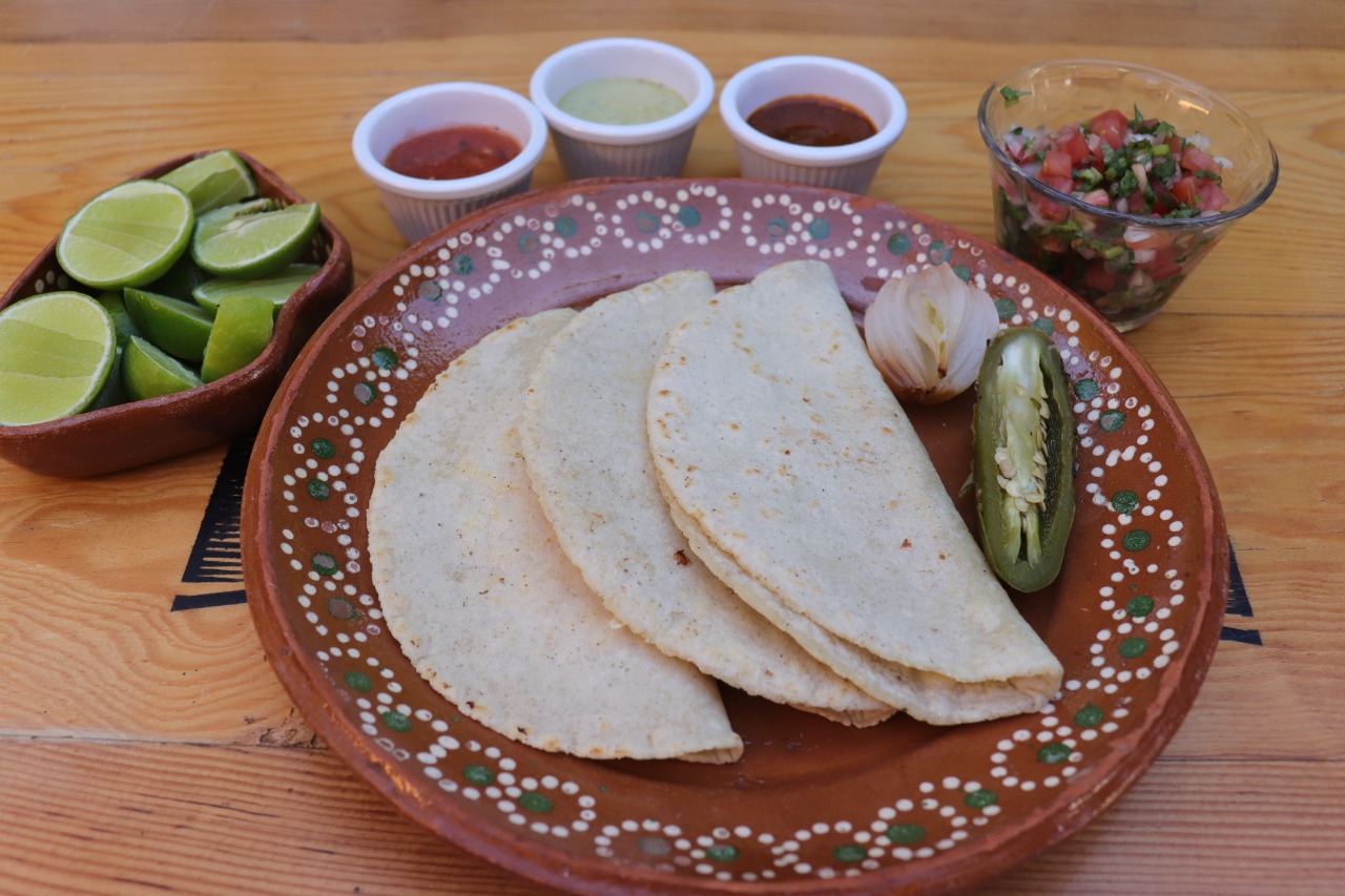 Asada, Pollo, Chorizo, Costilla, Lechon, Nopal, Cebolla, Chile, Frijoles, Tortillas hechas a mano.
