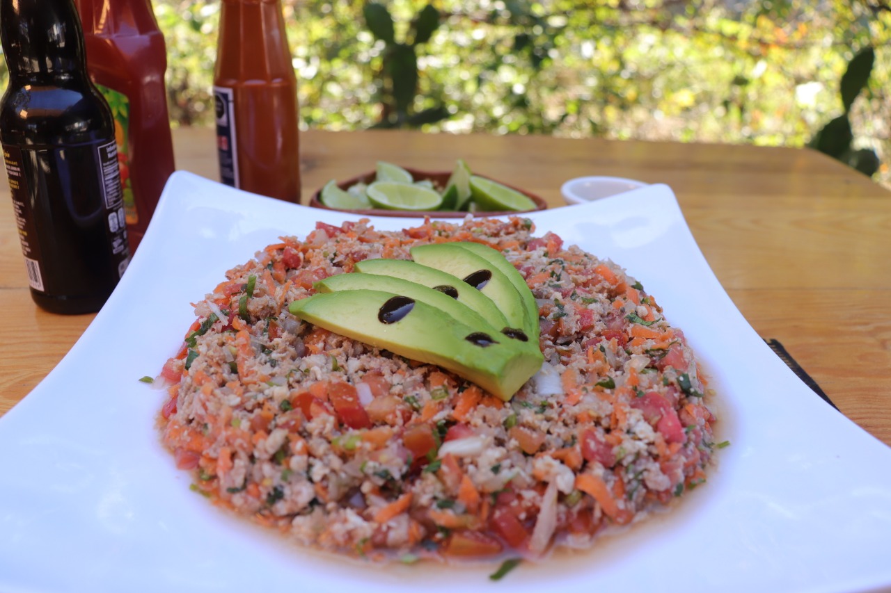 Preparado con cebolla, cilantro, jitomate,pepino y aguacate