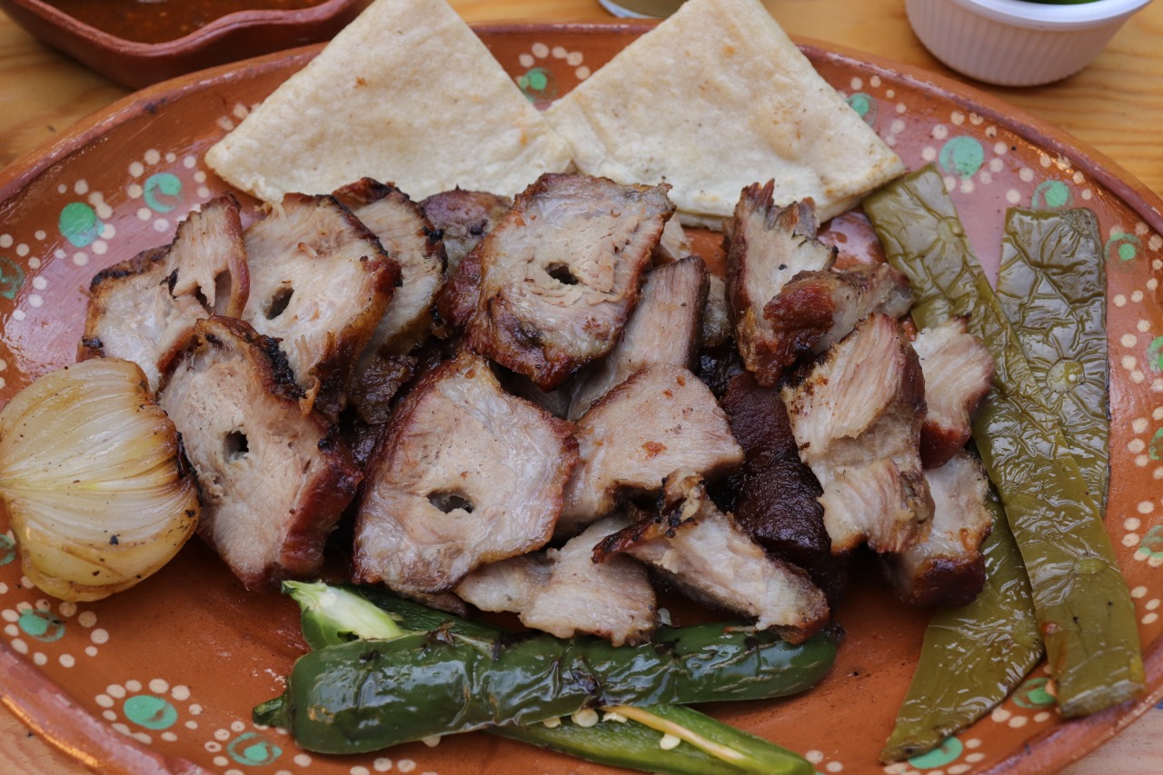 Lechon, Pollo, Asada, Costilla, Chorizo, Nopales, Cebolla, Chile y tortillas hechas a mano
