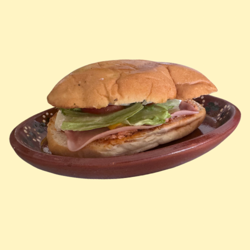 Preparada con jamón, queso amarillo, lechuga, jitomate, cebolla, chile y aguacate