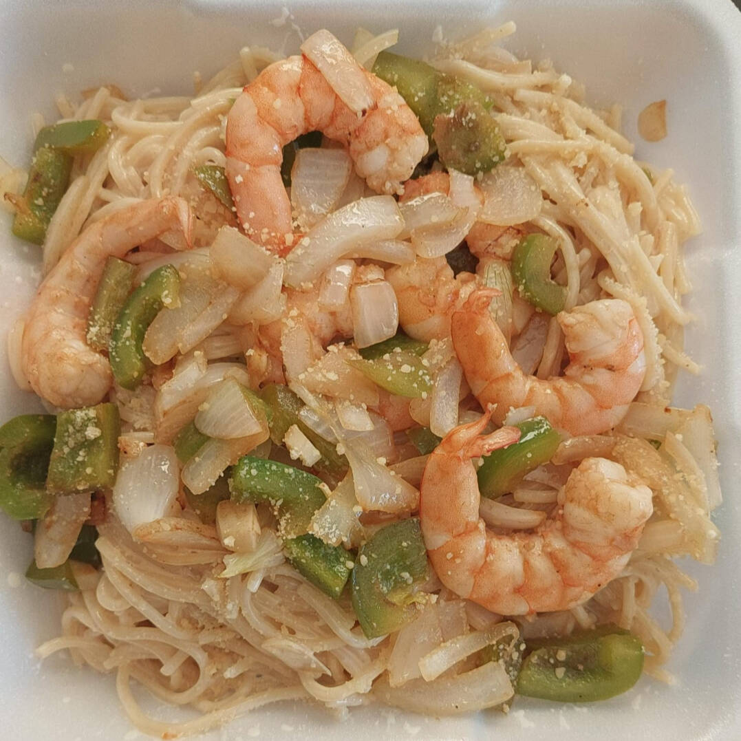 ESPAGUETI DE CAMARON + AGUA DE JAMAICA