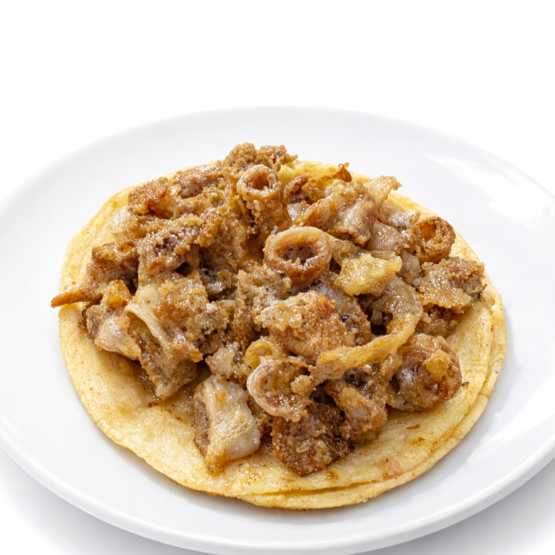Taco con tripa doradita crujiente
