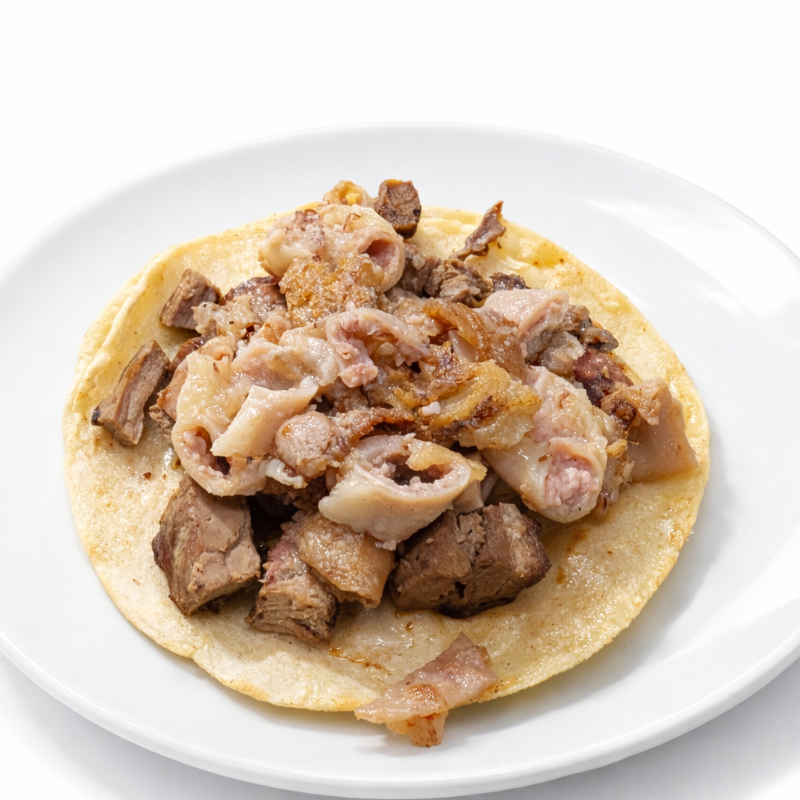 Taco de tripa (no dorada) sabor en cada bocado