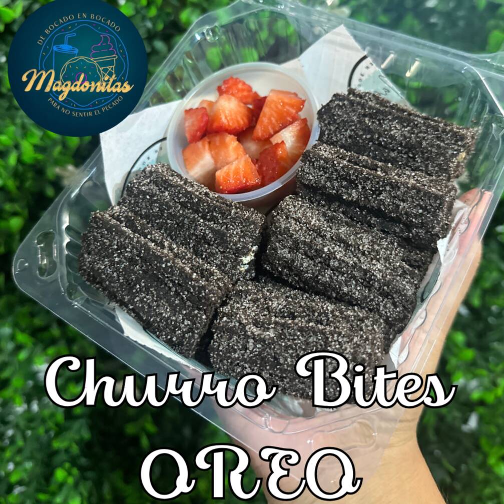 Deliciosas 12 piezas de churro natural espolvoreados con azucar y canela, acompañado de tu topping liquido favorito