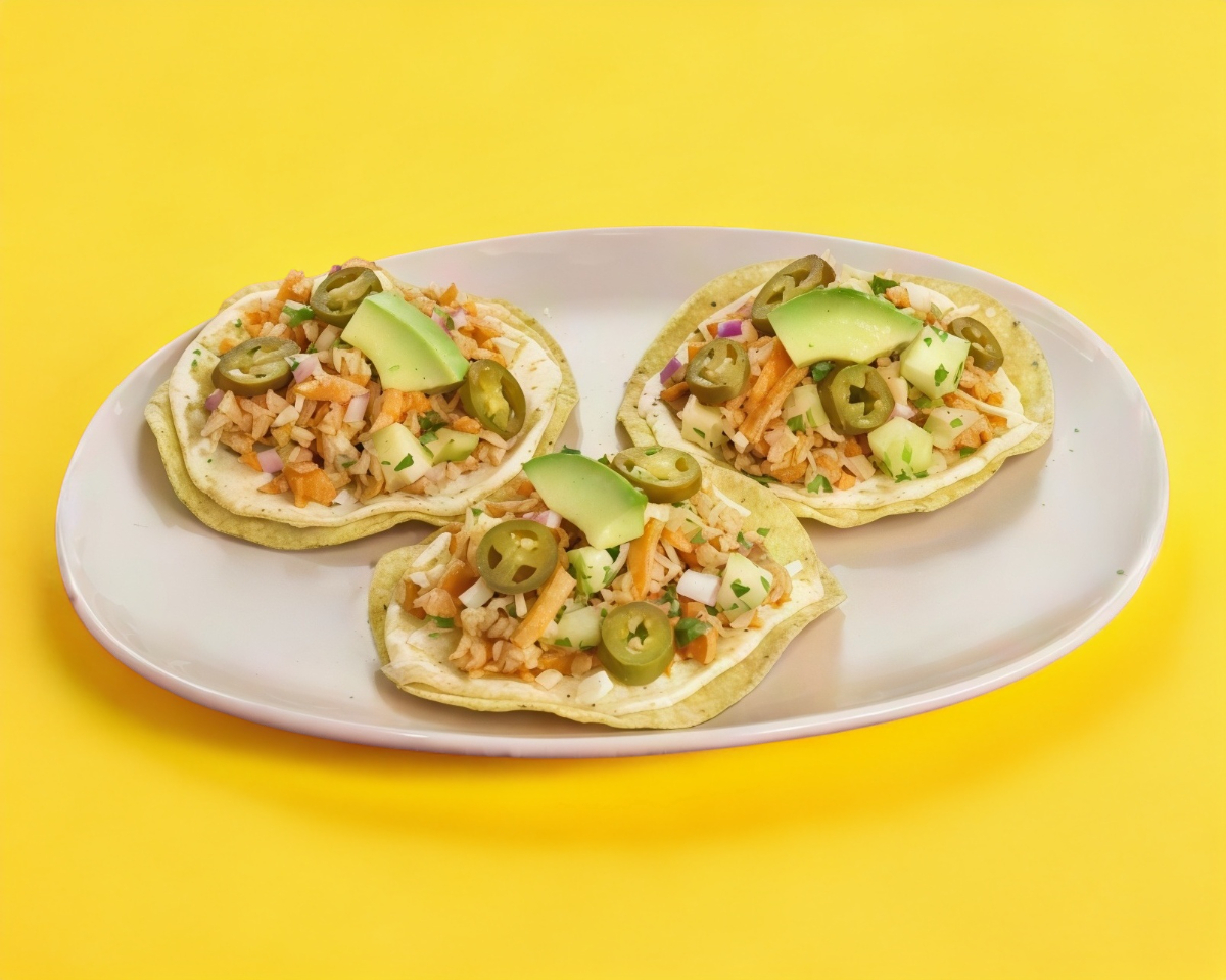Tostada de atún fresco marinado con soya, limón, serrano y cebolla.