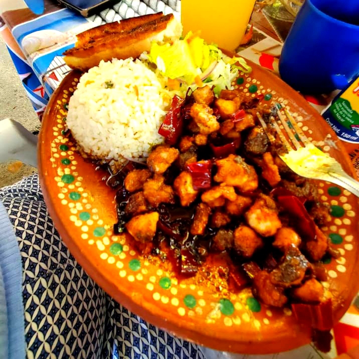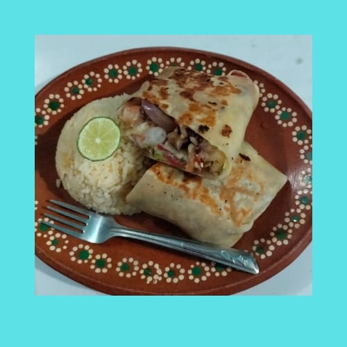 Atun en tiras y camarones en corte mariposa marinados en salsa chiltepin