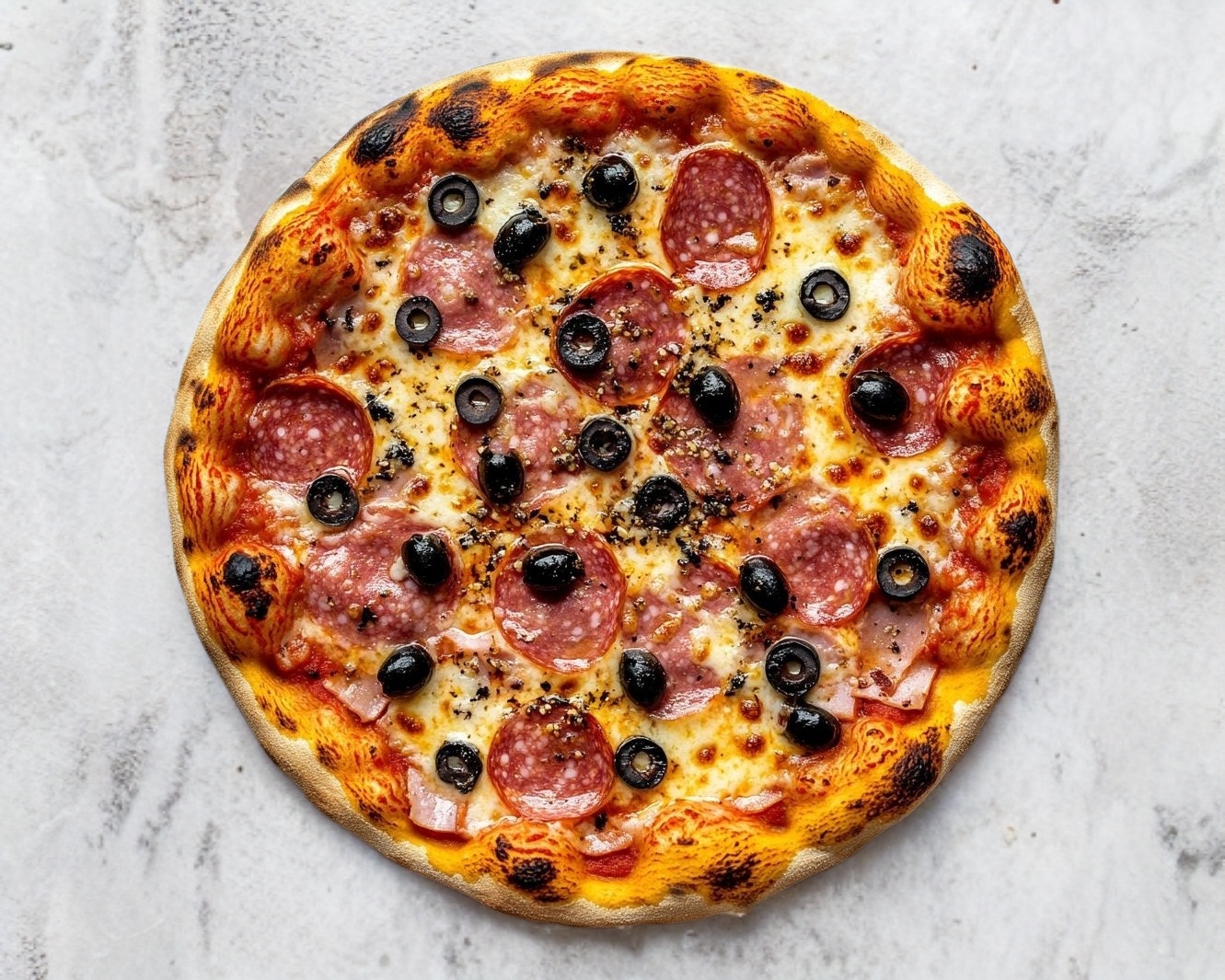 ¡La que nunca falla! Nuestra pizza familiar de 40 cm es perfecta para compartir (o disfrutar solo😉). Preparada con Salami italiano, jamón, aceitunas negras, sobre una base delgada y crujiente al estilo napolitano, cortada en 8 rebanadas generosas. Cada bocado es una explosión de sabor autentico. 🔥Ideal para ver pelis o una cena en familia 🔥