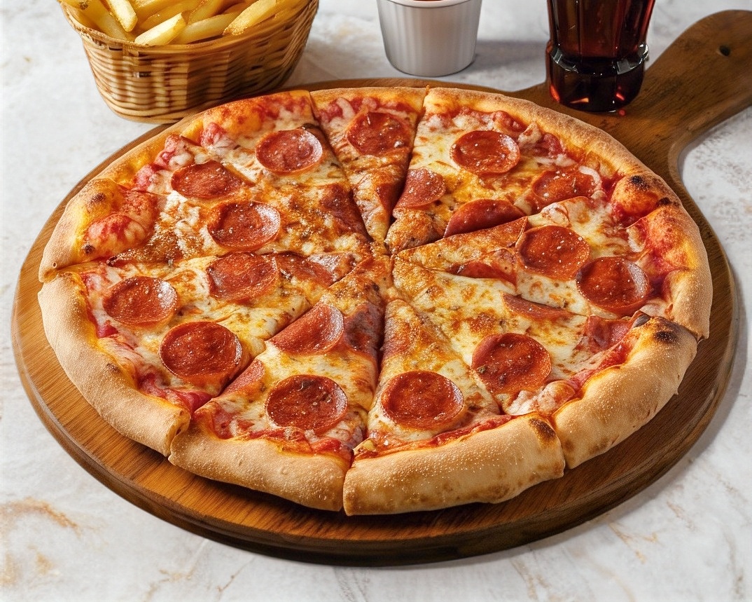 ¡La clasica que nunca falla!Nuestra pizza familiar de40 cm es perfecta para compartir(o disfrutar solo😉). Preparada con 280 gr. De queso mozarella derretido, 100 g de pepperoni doradito, y nuestra salsa de tomate sobre una base delgada y crujiente al estilo napolitano, cortada en 8 rebanadas generosas, cada bocado es una explosion de sabor autentico. 🔥Ideal para ver pelis, Una cena en familia 🔥