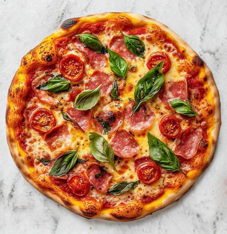 ¡La que nunca falla! Nuestra pizza familiar de 40 cm es perfecta para compartir (o disfrutar solo😉). Preparada con Salami italiano, tomate cherry, albahaca, sobre una base delgada y crujiente al estilo napolitano, cortada en 8 rebanadas generosas. Cada bocado es una explosión de sabor autentico. 🔥Ideal para ver pelis o una cena en familia 🔥