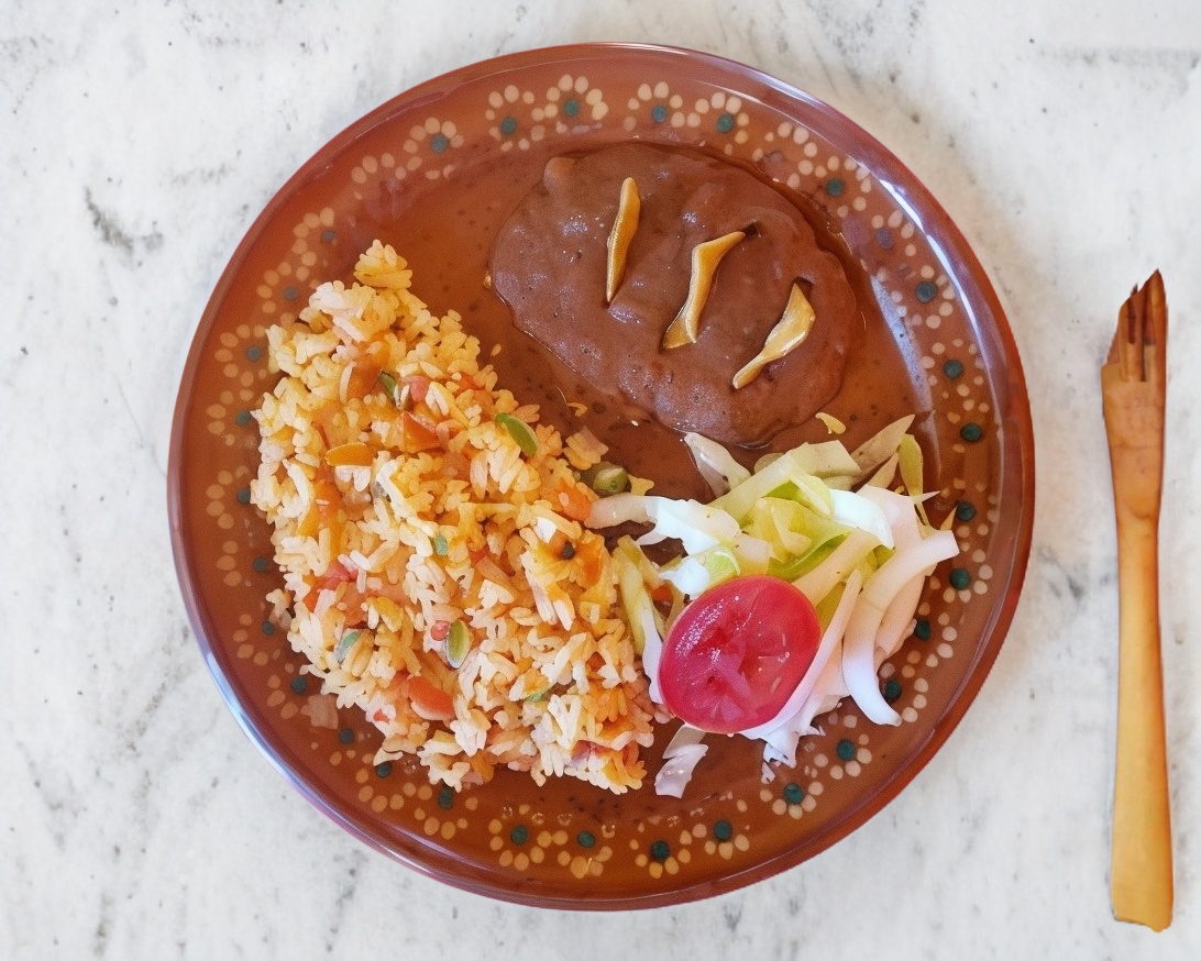 Sincronizadas con frijoles y ensalada.