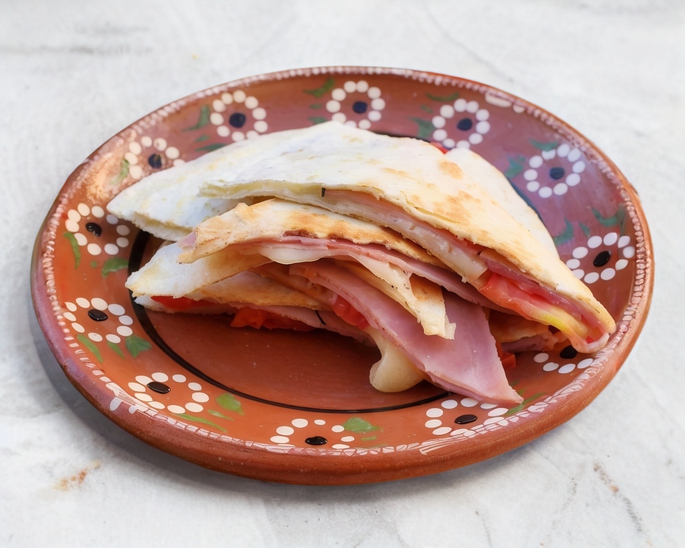Quesadilla con tortilla torteada.