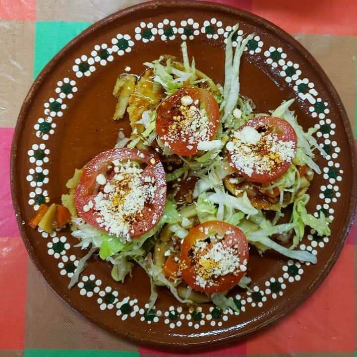 Sopes estilo Mexicano, a elegir (Pollo, Pierna o Picadillo) lechuga, queso, crema y cebolla desflemada, 5 piezas (5pzas)