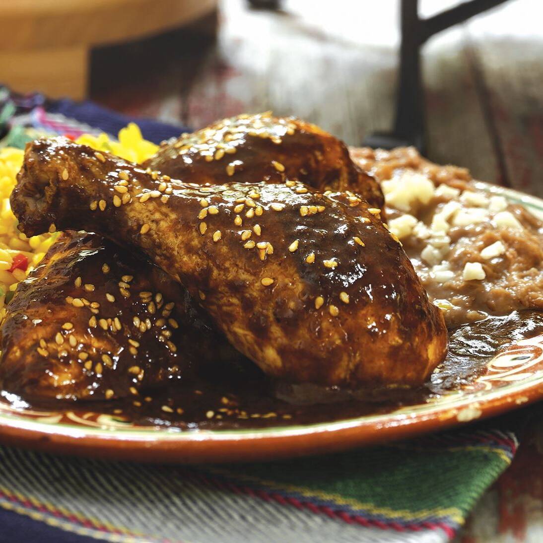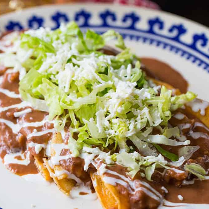 Suculentas!! cubiertas de mole tradicional en Nuestro México! Lechuga, crema y queso desmoronado!