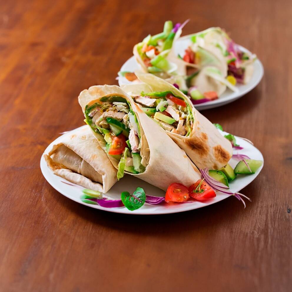 Deliciosa pechuga de pollo asada con cebolla, jitomate y poblano dentro de una tortilla de 35 cm y queso cheddar!