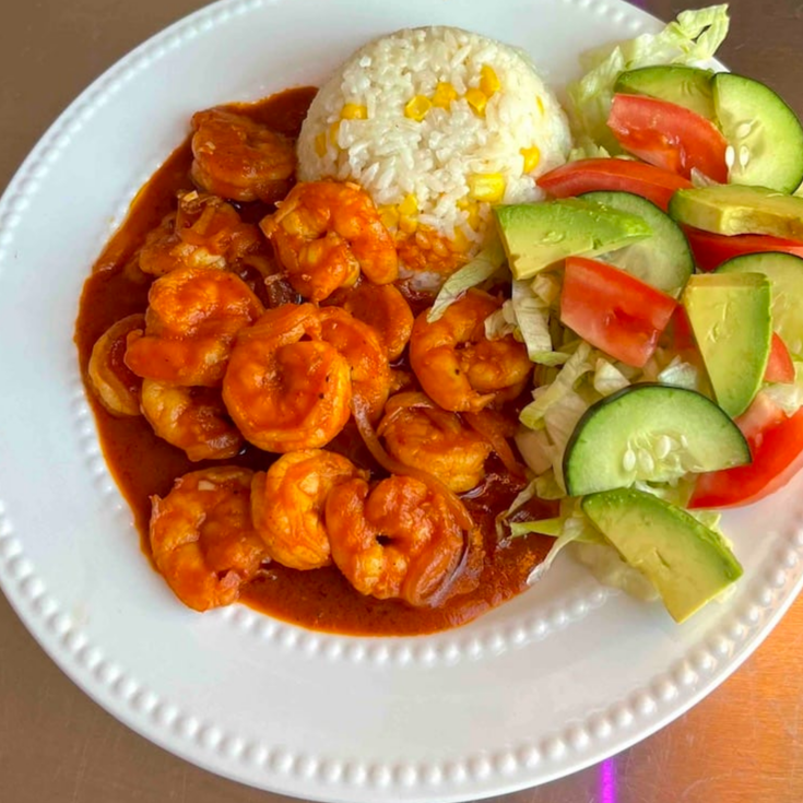 Camarones envueltos con tocino, queso cheddar, cebolla, jitomate y poblano en una tortilla de 35 cm.