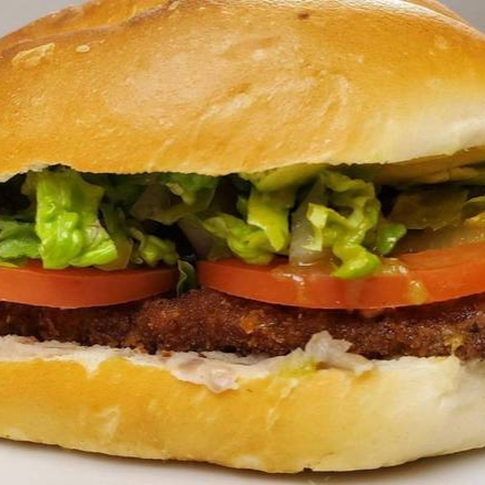 Rica torta con base de frijoles, milanesa empanizada de pollo, lechuga, jitomate y cebolla!