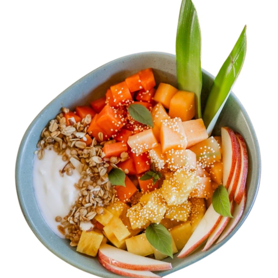 Fruta de temporada (200gr) + yogurt + granola + amaranto