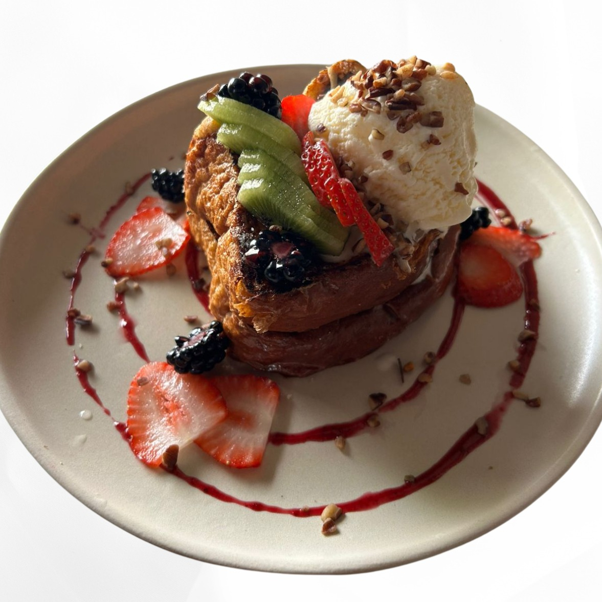 Brioche + helado de vainilla + mermelada de frutos rojos + nuez + higo