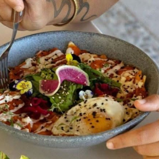 Huevos, queso orgánico, vegetales de temporada, frijoles, aguacate y mix de ensalada.