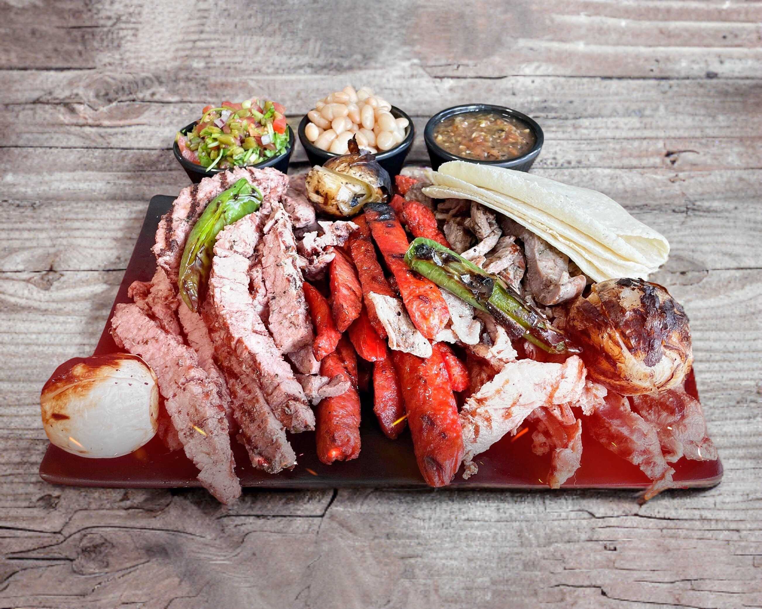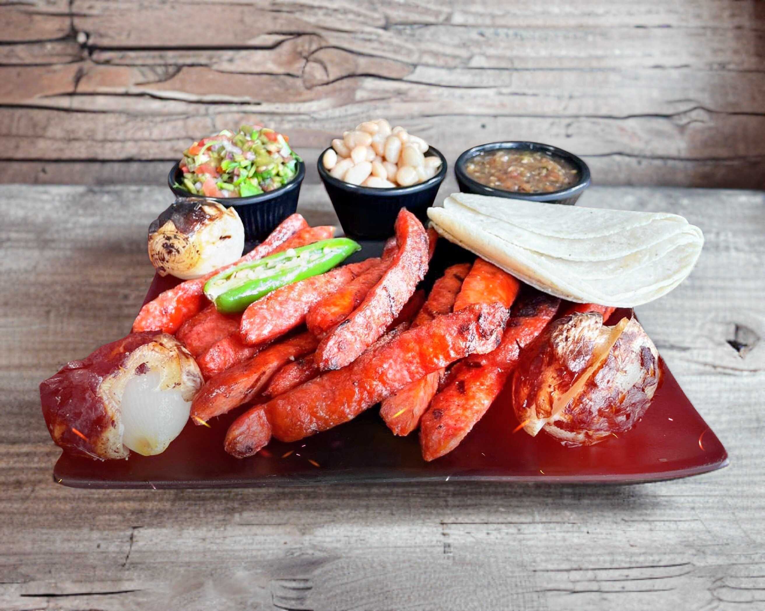 frijoles de la olla , ensalada de nopales, cebollitas asadas, salsa martajada y tortillas