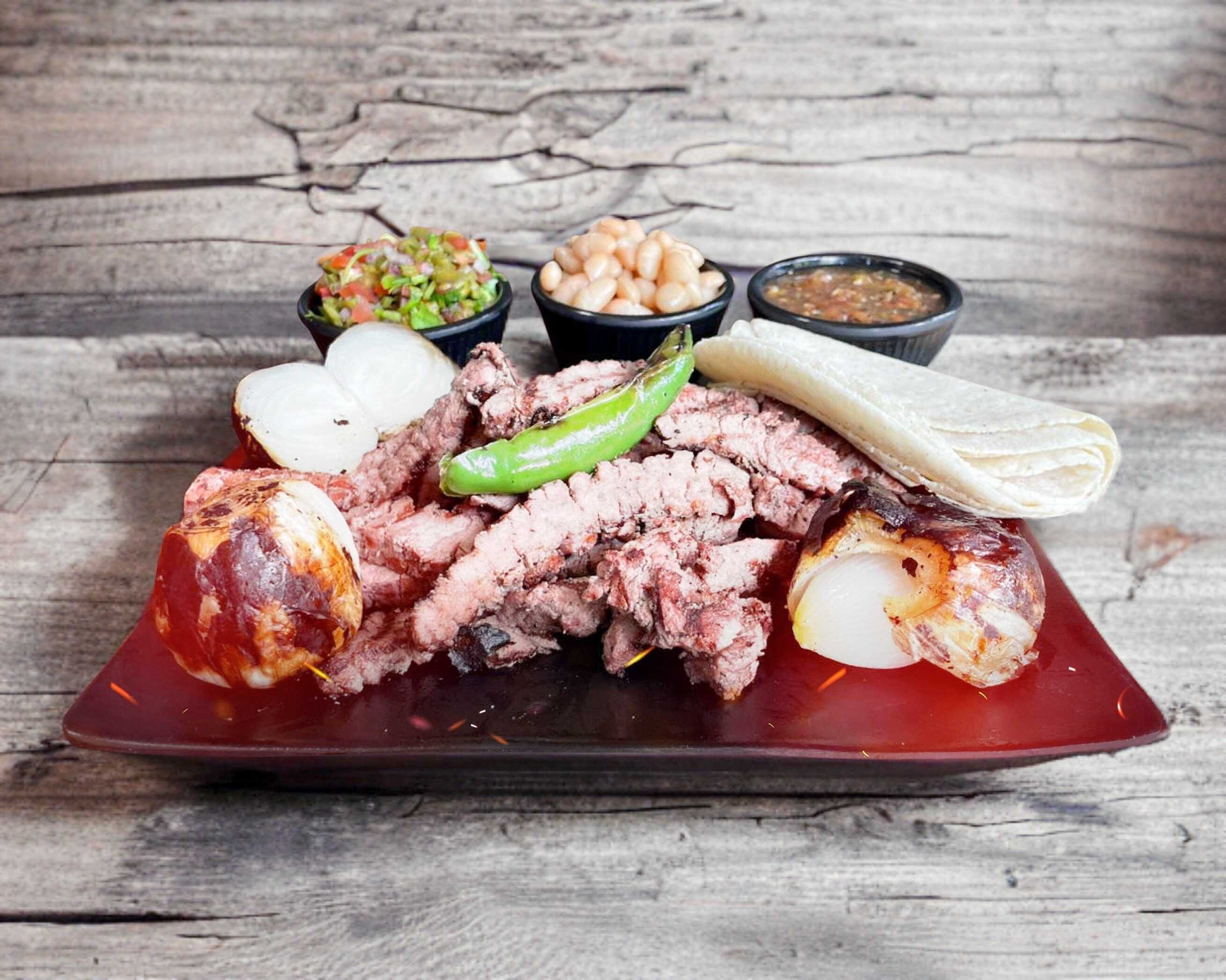 Platillo individual, Frijoles de la olla, ensalada de nopales, cebollitas, salsa martajada y tortillas ( 7 piezas de maíz)