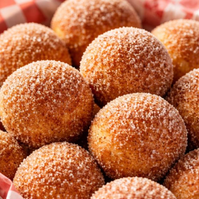 Bolitas de masa doradas y esponjosas, cubiertas con una deliciosa mezcla de azúcar y canela. Dulces, suaves y perfectas para cerrar con broche de oro.