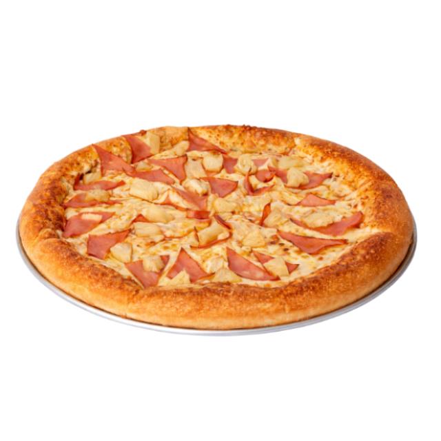 Pizza Clásica con nuestro toque especial, jamón + piña con mezcla de quesos.