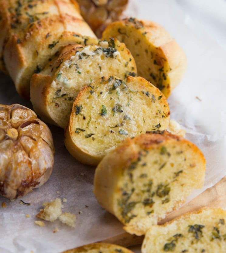 7 Piezas de pan con ajo.