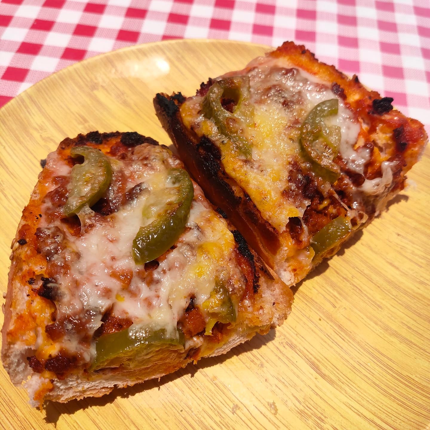 Bolillo doradito con mayonesa, salsa marinera de jitomate, jalapeño, chorizo ranchero y queso mozzarella derretido.