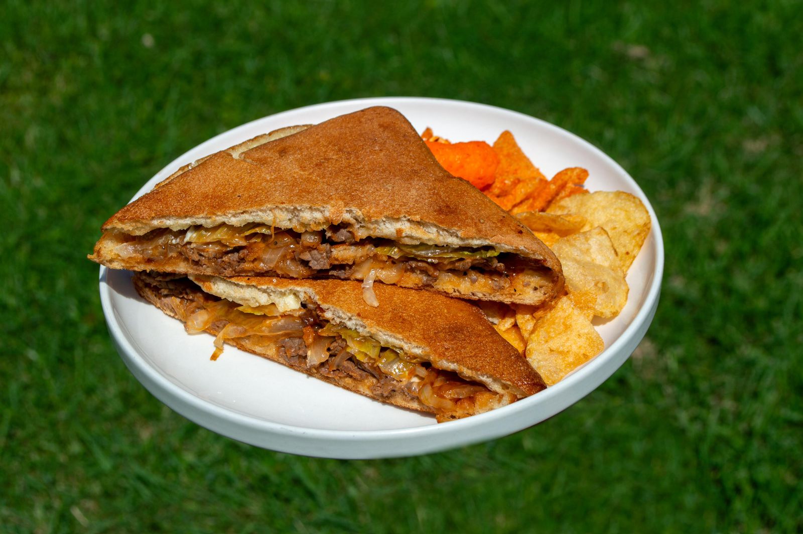 Panini de carne marinada con cebolla y zanahoria.