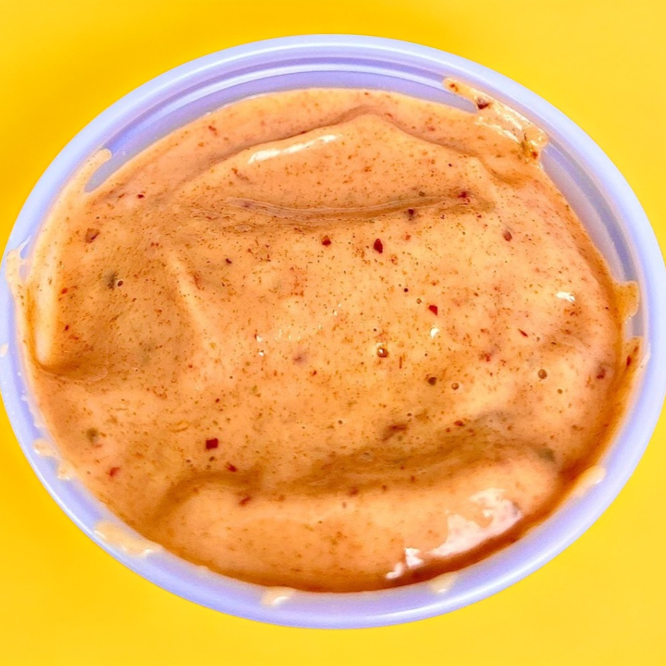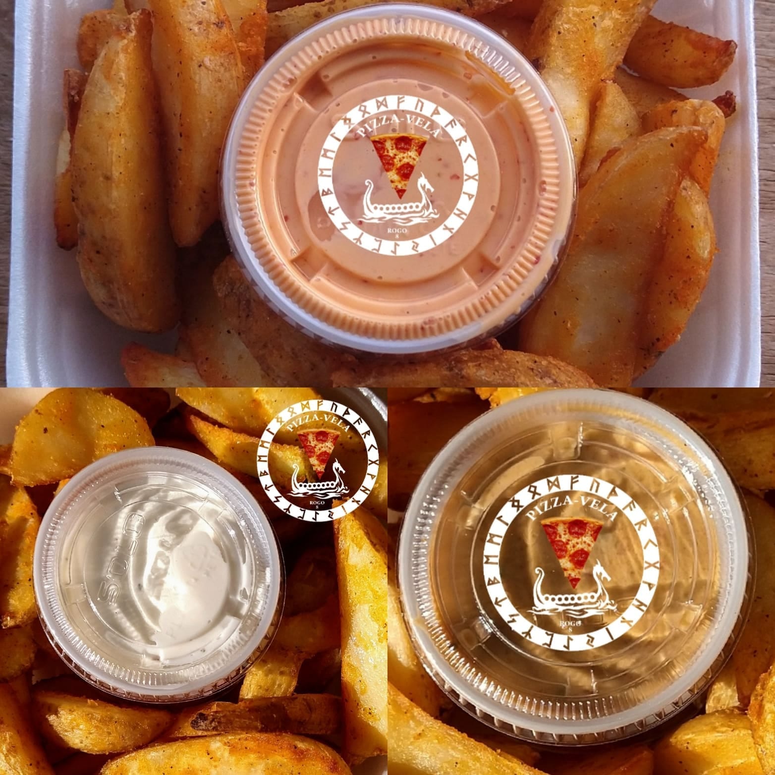 250 gr de papas gajo horneadas, 1 aderezo ranch de 2oz y 1 cup de catsup de 2oz. Con un aderezo a elegir.