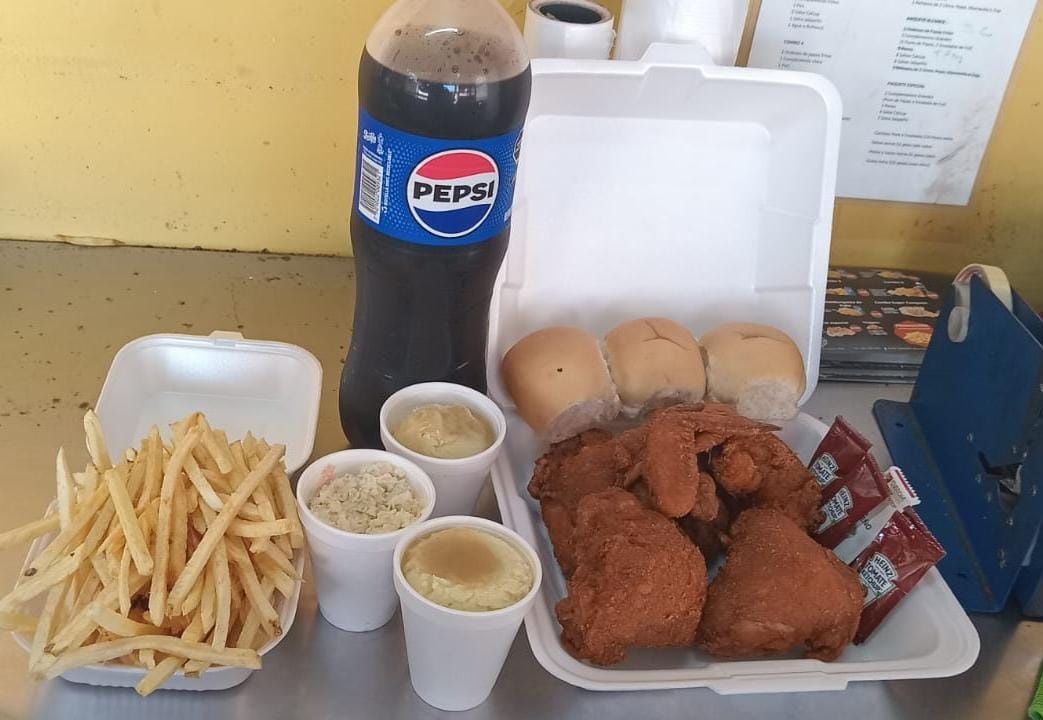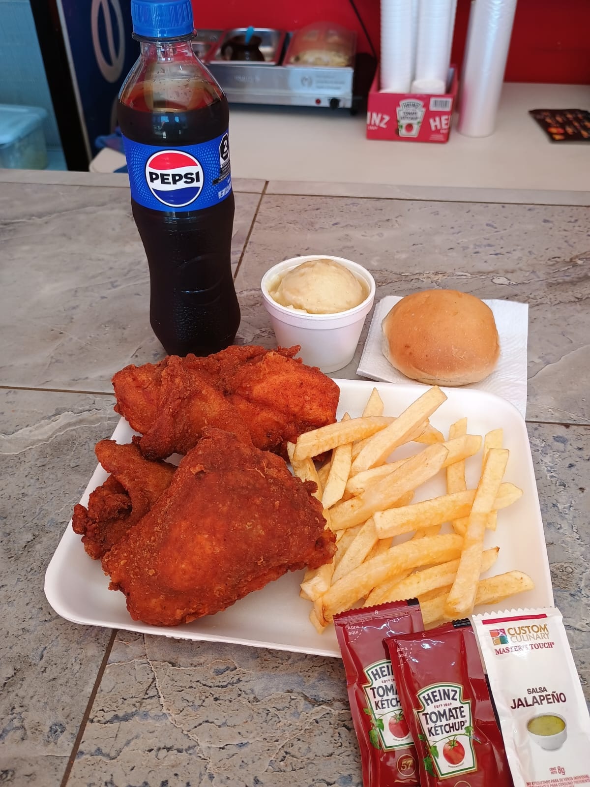 4 Pz Pollo + Refresco + Orden de Papas Fritas 120 gr + Complemento + Pan Bollo