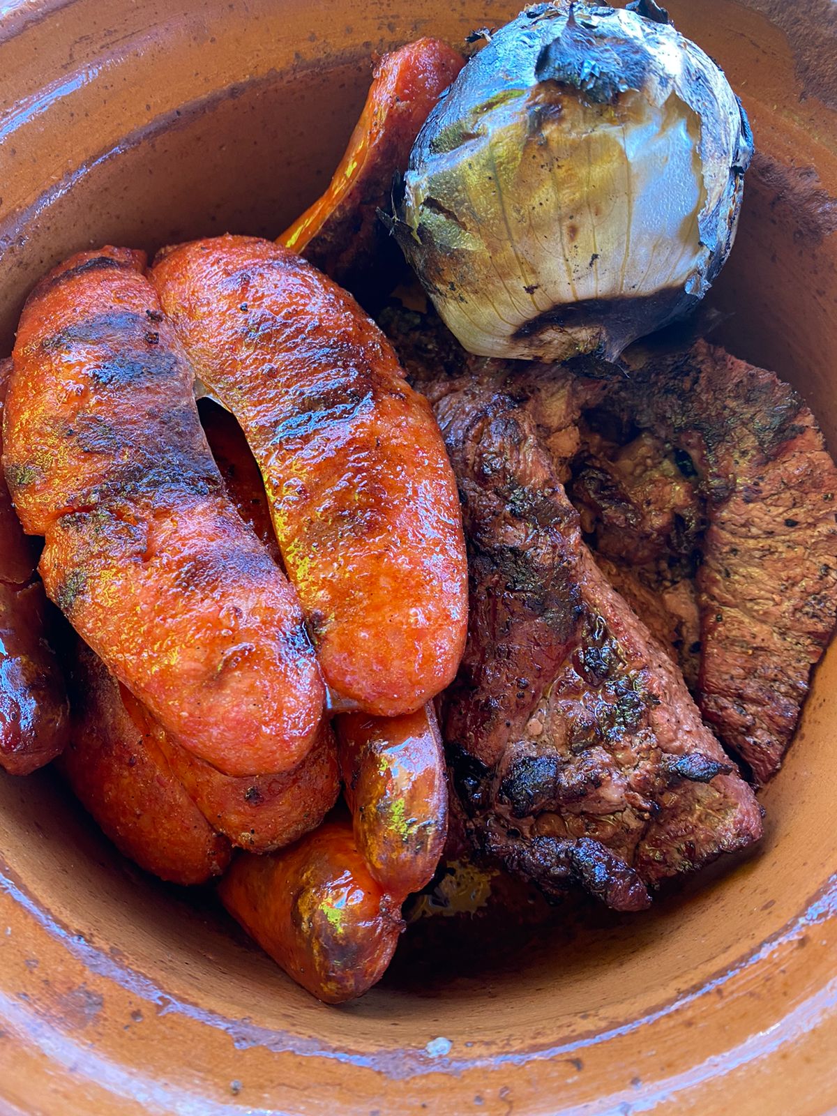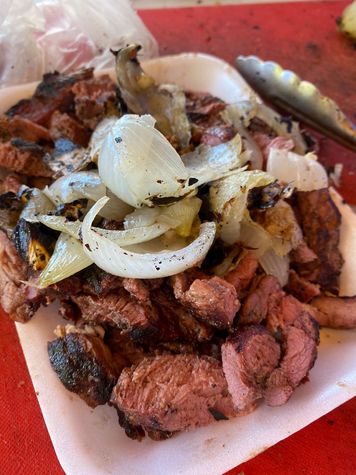 ACOMPAÑADA DE TORTILLA,SALSA,ARROZ Y CEBOLLITA ASADA